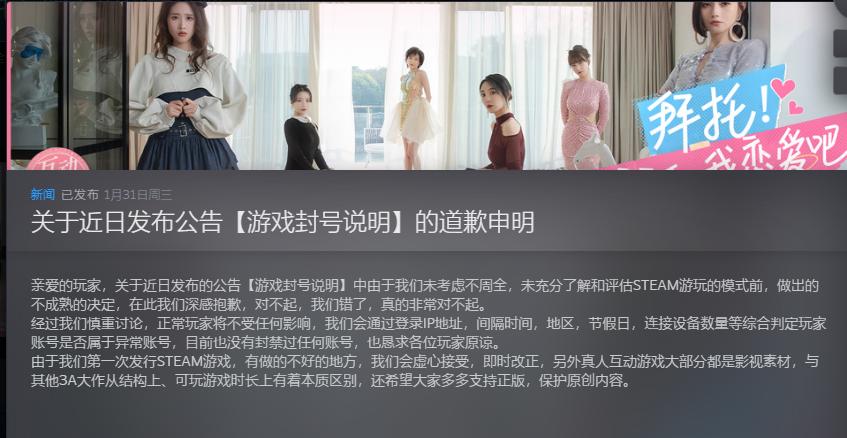 本文轉載自TapTap公衆號,作者:槿繁Anywhere做一款遊戲需要多久?4年——大概能做旗艦級遊戲;18個月——這是大多數手遊的製作週期;3個月——這是服務型遊戲大版本更新的頻率。2023年10月18日,《完蛋!我被美女包圍了》在Steam開售,上線即爆火。不到3個月就狂賣190萬份,以8000萬的銷售額位居去年國遊銷量榜第二,是第三名銷售額的2.5倍,堪稱遊戲界的奇蹟。看紅了眼的大小資本立刻嗷嗷衝上去想分一杯羹。短期內超過23款“完蛋like”就在各大遊戲商城開啓頁面,最快的一款上線時間是去年12月29日,只比《完蛋》晚了兩個多月。目前已經上線的超過9款,要麼滿是差評,要麼乾脆沒幾個人買,別說第二個爆款,達到銷量及格線的遊戲一款都沒有出現。在《完蛋!我被美女包圍了》爆火五個月之後,第一批跟風的“完蛋”們——集體完蛋了!世界上最早的互動式電影可以追溯到1966年導演拉杜茲創作的《自動電影:一個男人與他的房子》。電影會在關鍵的劇情節點暫停,觀衆通過按下紅綠色按鈕,投票選擇情節和想看的故事,這在當時很新鮮,但沒啥人關注。隨後的幾十年間,越來越多精緻的互動式電影被創造出來,但互動電影的可玩性和復玩性實在太低,基本上全靠編劇水平或者新鮮感支撐,從1995年雪樂山的《幽魂》,到2018年網飛的《黑鏡:潘達斯奈基》,不管上線時有多火,基本上都逃不開曇花一現的命運。2018 年,《女神駕到》就在嘗試真人戀愛互動玩法。但整個互動式電影殺出來的爆款滿打滿算就只有兩個,2019年的《隱形守護者》,2023年的《完蛋!我被美女包圍了》。巧的是,這兩款遊戲都在大火之後帶動了一波互動電影的小高潮——然後,就和海外的前輩們一樣,沒有然後了。遊戲類型先天劣勢不說,尷尬的是,這些“完蛋like”的製作方不少還是半路出家,後果可想而知。除了少數幾家背後有遊戲公司背景,其他不管上沒上線,製作方的遊戲開發經歷多數白紙,一些還都是突然跨行業過來混口飯喫的:《拜託!明天和我戀愛吧》的發行方是視頻平臺優酷,製作方柚元文化在2023年10月23日才成立;《哎呦!這麼多美女呀》的製作方是一家攝像頭供應商;發行《100%滿分戀愛模擬器》的伽壹傳媒主營業務是短視頻直播;《我成了女神收割機 》的黑巖星球是拍網絡大電影的;更騷的是製作《別跑!美女在追你!》的佳博德信,他們一直到去年11月17日,纔在經營範圍裏增加了互聯網遊戲服務,擺明了就是爲了口醋包的餃子。飯店招廚子,來了一羣唱戲的,寫詩的,畫畫的,就是沒有炒菜的,接下來這個飯店會發生什麼應該不難想象。像優酷的《拜託!明天和我戀愛吧》,Steam評價看上去是特別好評,但打開剛發售時的評論區,馬上就能看到各種賽博仿生人的團建現場,充分發揮自家視頻刷榜天賦。在遊戲運營上,他們還無視平臺既有規則,以反盜版的名義,宣佈把使用Steam賬號共享的玩家進行封禁處理,離譜的操作在惹了衆怒後,只能光速滑跪。《我和美女有個約會》乾脆就直接在內容裏往目標用戶身上灑雷。爲了打差異化,一個面向宅宅的戀愛遊戲,竟然塞進了一個可攻略的男閨蜜。這個本不可能出現的產品定位失誤,直接把玩家CPU給乾燒了。本來大夥只想和美少女貼貼,結果打開遊戲是“兄弟,你好香”,操作很超前,結果也很現實,Steam評價不但褒貶不一,評價數甚至只有100多條。作爲一個真人互動遊戲,它拍攝失焦、鏡頭不穩、收音不清;作爲一款電子遊戲,它沒啥樂趣還有各種各樣的bug;作爲一個上 steam 的遊戲,它流程短到只有一個多小時,而steam的退款政策是2個小時,打完了還能退款。製作方應對差評的解決方案也很奇葩——他們選擇把女主寫真作爲福利送出去,想靠場外運作解決掉打差評的人。可惜送再多福利,680條Steam評測也只有褒貶不一,簡直就是小丑本醜。除了上面提到的這些遊戲,其他已經上線的《完蛋》們也都有很多質量問題,像劇本混亂不清、角色顏值不夠、UI設計繁瑣和各種各樣的bug等等——畢竟一款正常遊戲的研發都是按年算,這些真人戀愛遊戲卻基本都是去年10月後才立項,然後光速上線,平均製作週期也就三個月,能穩定運行都已經是機魂顯靈了,還能指望啥呢?小衆的品類、專業不對口的團隊、不合理的開發週期、低劣的質量和奇葩的運營策略,構成了這幾個月“完蛋like”們羣魔亂舞的盛況,用這些遊戲評論區裏的話來說就是,再怎麼像素級複製瑜伽名場景,都只是“對原作拙劣的模仿”,不撲街簡直就是不可能。作爲一款真正引領風潮的遊戲,在關於“爲什麼會爆火”的問題上,《完蛋!我被美女包圍了》的製作方在各大采訪裏,反覆提到的詞都是“超出預期”。2月5日,DLC《房間裏的心跳》正式上線。有經驗、有口碑、有爆款、有品牌故事,再加上紀錄片、專訪和大大小小的媒體報道,怎麼看它都是一堆《完蛋!》裏最有可能成功的。但本體190萬的銷量沒能讓DLC重演輝煌,拉高了期待的玩家還因爲劇情安排、演員演技等原因怒打差評,1000多條評價裏,Steam好評率只有褒貶不一。就連風口的創造者都沒法複製自己的成功 ,還沒正式上線的“完蛋like”們就更別提了。它們進入到了一種尷尬的境地:繼續做,撲街的未來猶在眼前,不繼續做,那早先磨劇本和拍攝的成本就這麼浪費掉了——狂熱過後,深坑裏全是裸泳的。除了賽道本身就是一片深坑外,把這灘水攪得更渾的,還有追求短期收益的巨