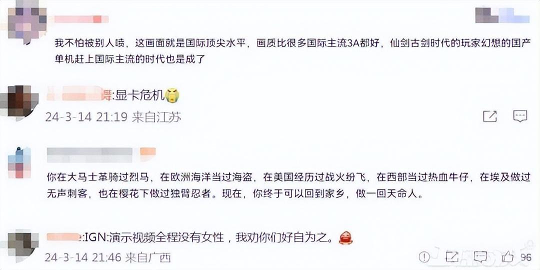 有網友直言,這遊戲的畫面已經達到了國際頂尖水平,畫質比很多國際主流3A都要好,仙劍古劍時期國內玩家幻想的,國產遊戲追上主流畫質的願望實現了,有網友自嘲說這是顯卡危機。有玩過衆多國外知名大作的玩家感慨,在西部當過熱血牛仔,在埃及做過無聲刺客,也在櫻花下做過獨臂忍者。現在,你終於可以回到家鄉,做一回天命人。