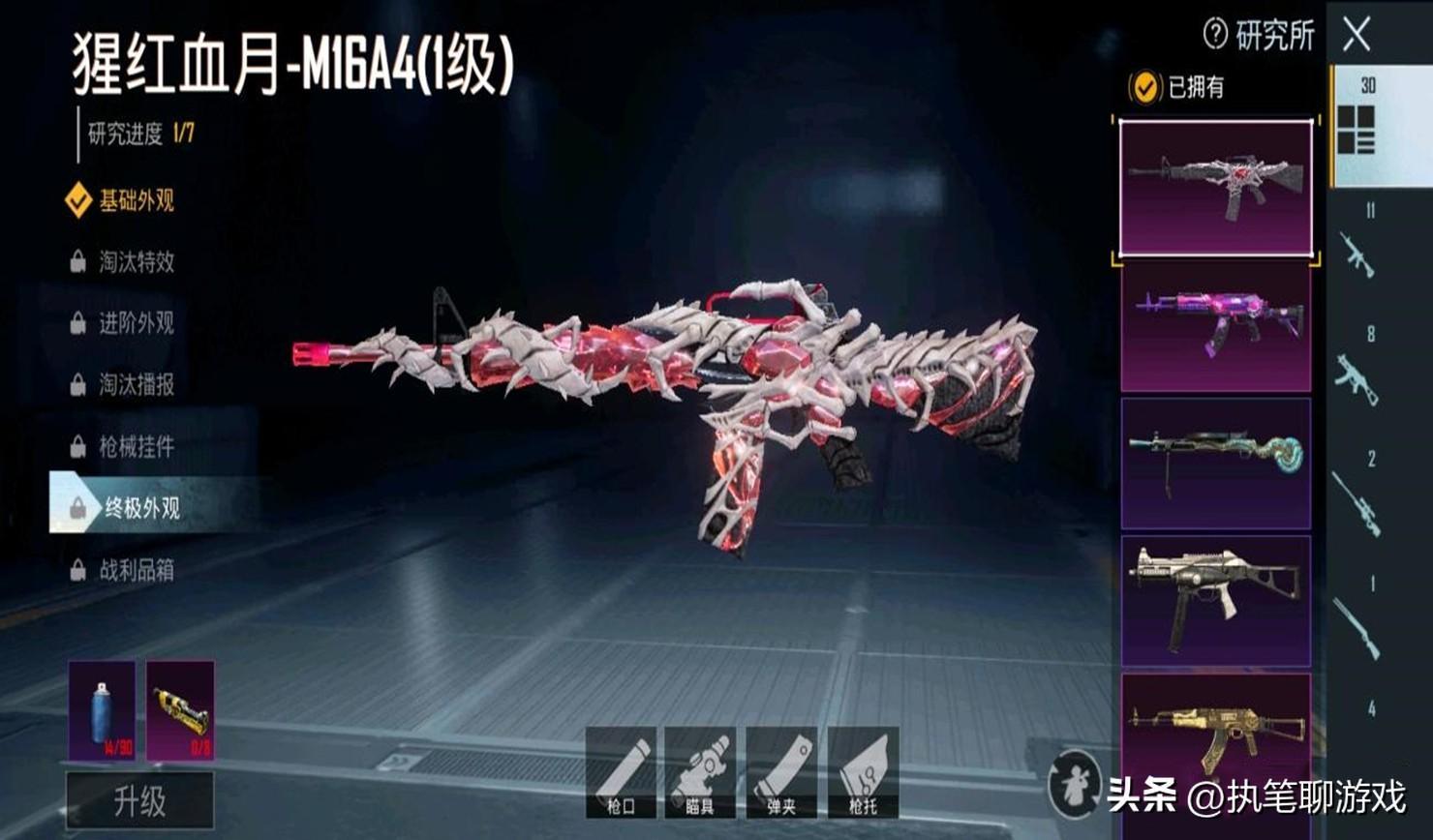 接下來登場的是猩紅血月M16A4,自從光子多次調整之後,M16A4如今鮮少能看到它的身影了,還記得以前沒有調整時,高端局裏的大神拿上它,簡直就是“人形大炮”。