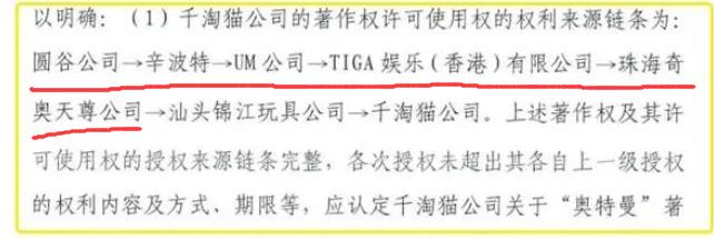 我們的主角終於來了,沒錯,奇奧天尊拿的其實就是基於《1976合同》的版權。總結一下,新創華的大陸版權是圓谷直接給的,奇奧天尊的大陸版權是通過一份有爭議的合同,再在海外繞了一圈給到的。