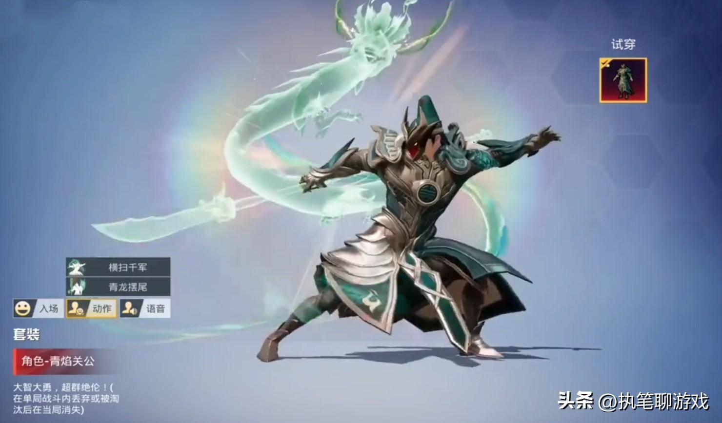 同樣作爲傳說級神裝,專屬動作怎麼少不了,一個是橫掃千軍,一個是青龍擺尾,僅是這名字就聽上去格外霸氣,青龍偃月刀揮舞時出現的青龍若隱若現,這樣的動作可以說是霸氣四射,在遊戲中的表現也說得過去。