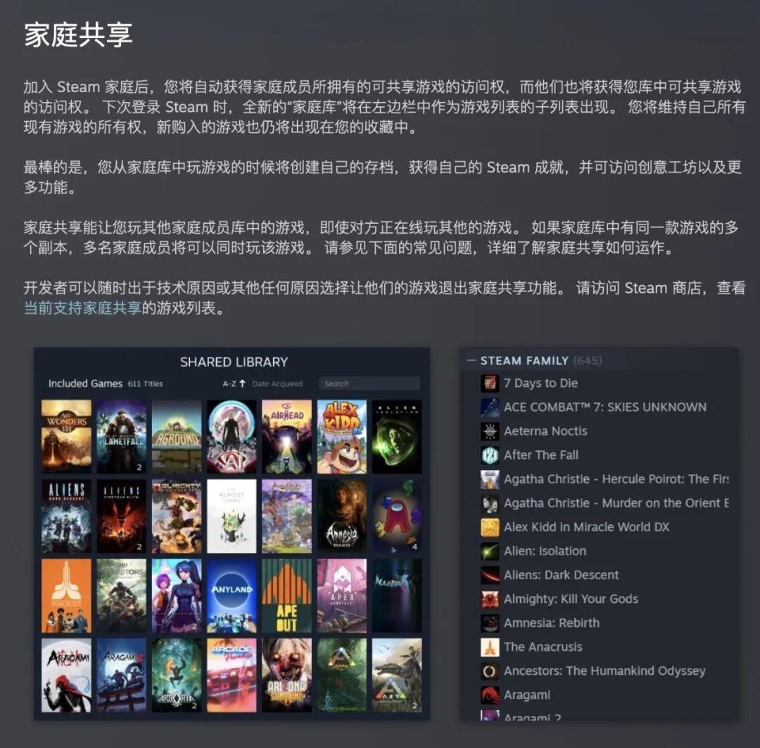 在新版的“Steam家庭”中,每個家庭最多可以邀請5個家庭成員(含創建者共6個人),成員加入後獲得家庭庫,大家共享遊戲的訪問權。成員還能擁有自己的存檔和成就。總之就是一人買遊戲,其他人也爽玩。
