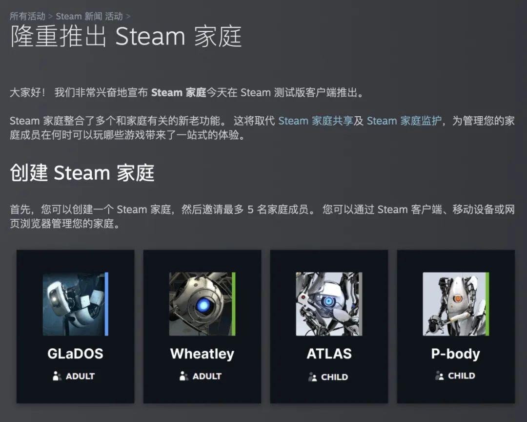 今天, V社在Steam測試版客戶端上,更新了“Steam家庭”功能,相當於替代、整合了之前的家庭共享、監護等功能。