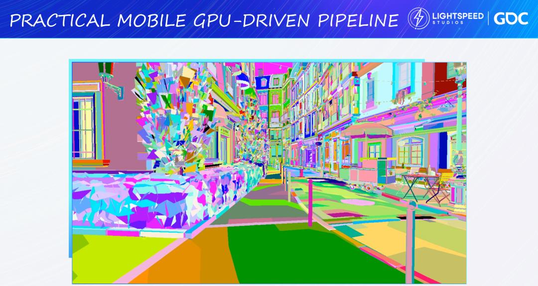 其次,他們在移動設備上嘗試了GPU驅動渲染管線,提升渲染效率,爲同時呈現包含數以萬計網格、數千種不同材質的大場景,提供性能支持。