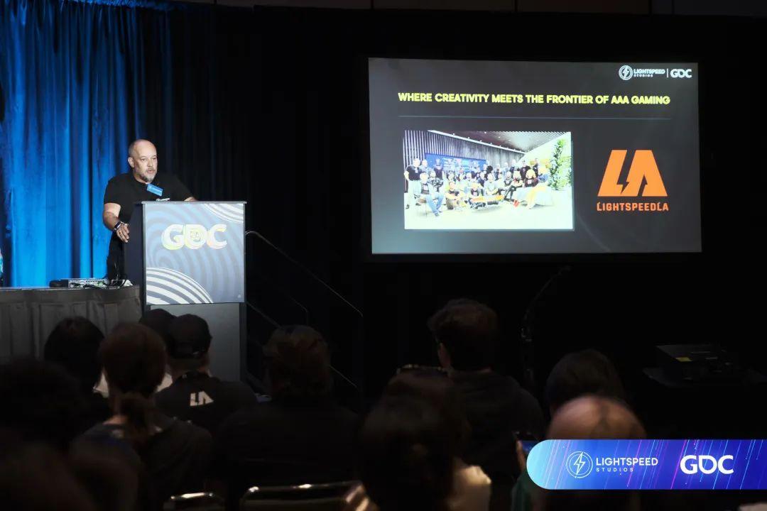 今年到場的大廠及相關工作室不少,光子工作室羣(下稱光子),也再次登臺。但他們這次的分享安排,卻和以往有較大差異:其一是這次來做演講的大咖更多,包括負責光子海外工作室Lightspeed L.A.的光子副總裁Steve C. Martin、合作遊戲《金剷剷之戰》製作人Vigil Yang等;其二,今年光子挑選了不少時下熱議話題,比如很多廠商都在探索的AI,以及越來越多人不敢去碰的3A遊戲……
