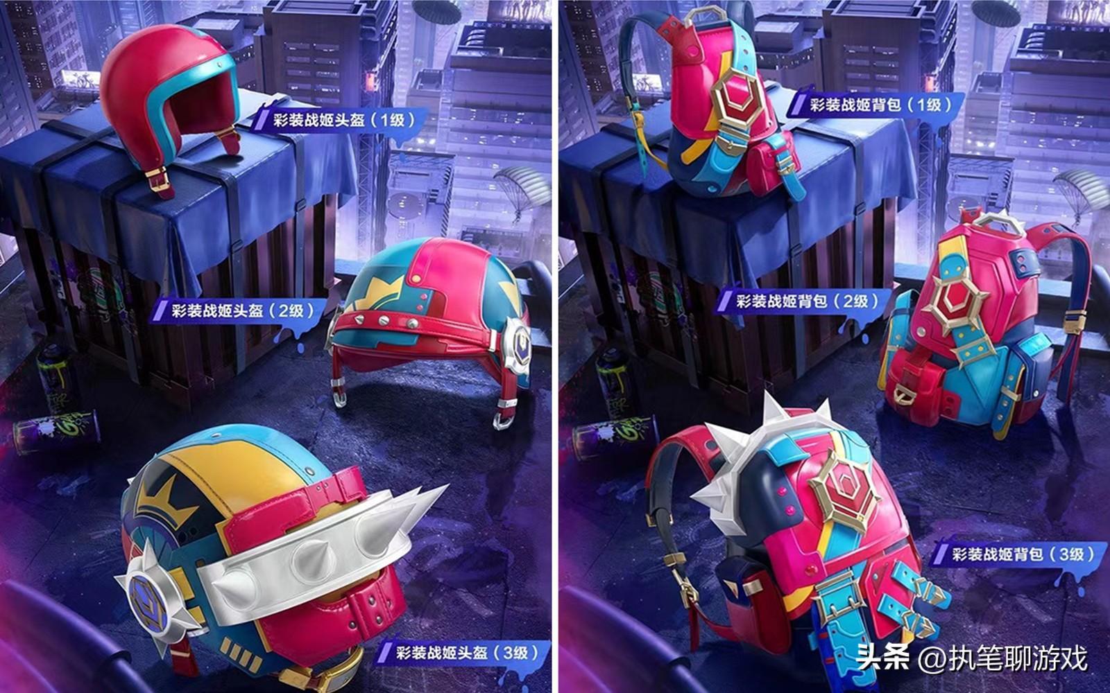 接下來登場的是頭盔、揹包,看到第一眼的時候,天哥就沒忍住笑出聲。沒辦法,別人的3級頭都是各種炫酷的護眼罩之類的裝飾,這次光子直接出來個“尖刺”,這樣的外觀着實是老玩家們大開眼界了,而且就連3級包也有類似的裝飾,真不知道美工到底是怎麼想的。