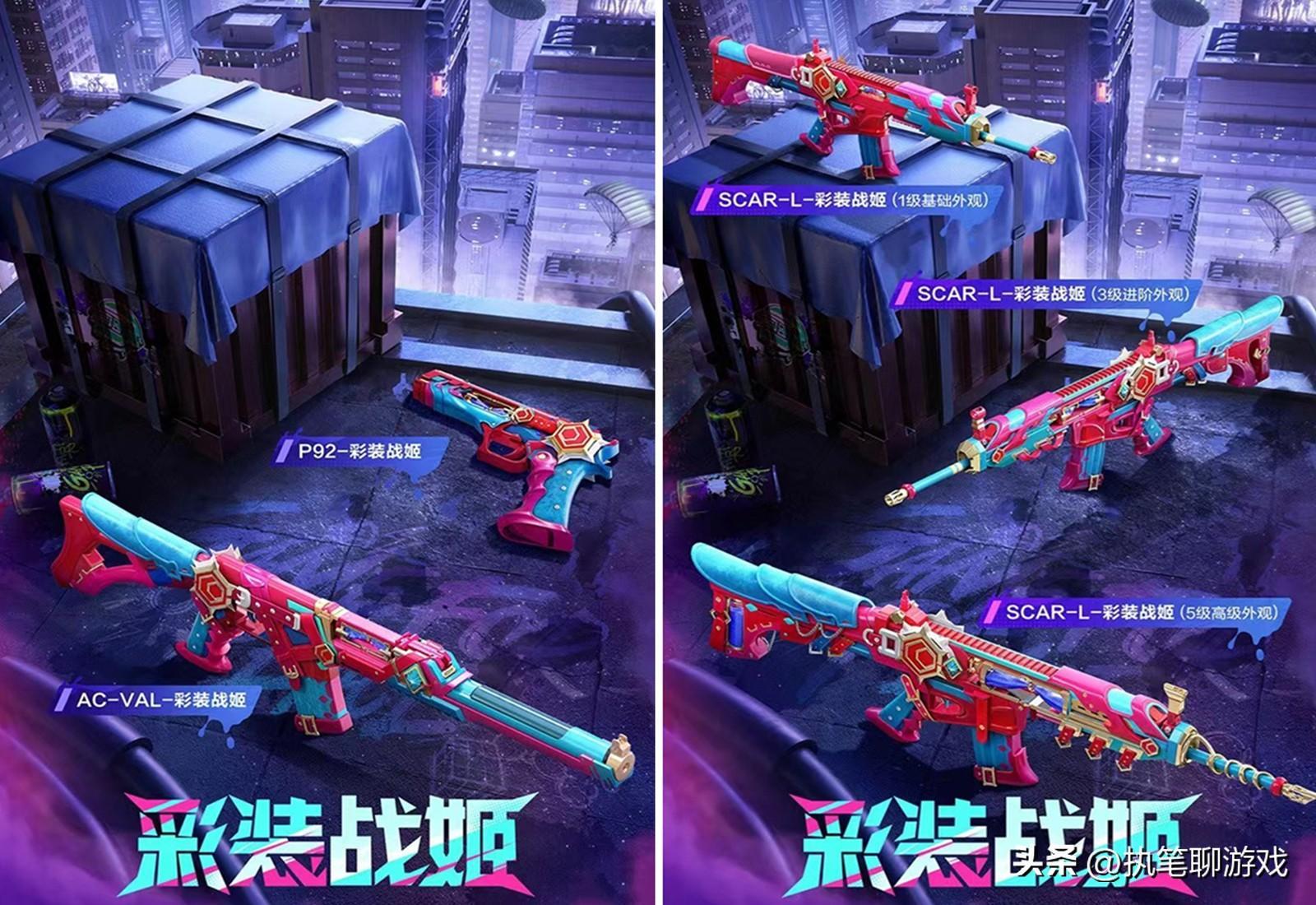 此次出現在“塗鴉轟炸”的套裝共有3個,它們分別是彩妝戰姬、彩霞狙擊、幻彩戰盾。