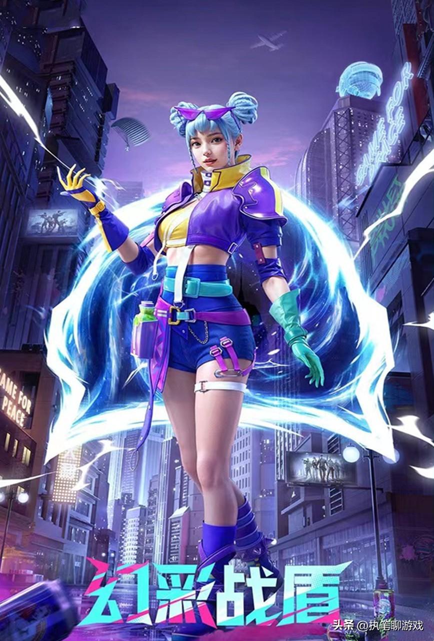 最後則是“幻彩戰盾”,也是3套衣服中“墊底”的存在,這種紫藍搭配的套裝在《和平精英》裏並不怎麼討喜,灰藍色的“小揪揪”髮型也讓玩家們沒眼看,特別是兩種不同顏色的手套,着實是讓人喜歡不起來。