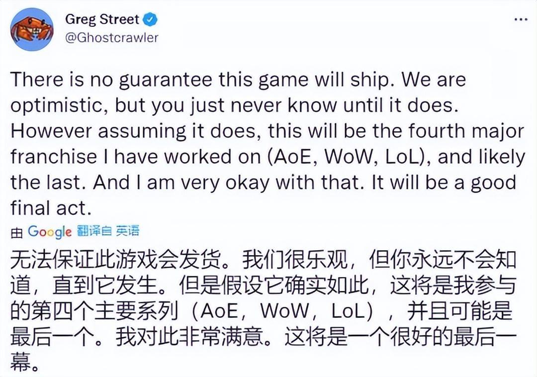 當然,X博士也知道,對於很多《英雄聯盟》愛好者來說,這樣的消息的無疑是個晴天霹靂:明明在2022年的時候,負責這項目的製作人鬼蟹還在推特上“開香檳”,說英雄聯盟MMO網遊超級好玩,有望成爲他從業生涯中最後一款遊戲。