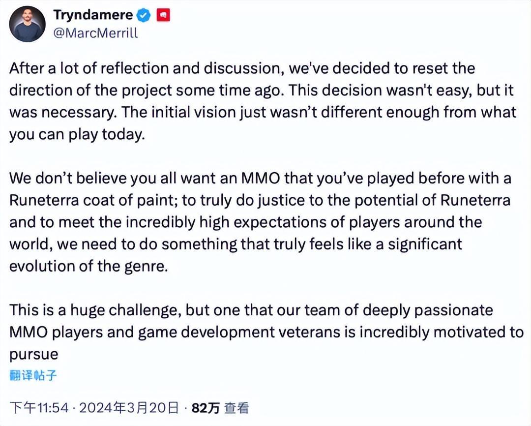 所以,拳頭遊戲 Riot 聯合創始人Marc Merrill做出更改拳頭MMO網遊研發方向,更換遊戲製作人,以及“雪藏”這款MMO網遊數年,對外保持很長時間的“靜默”狀態,也是很情有可原的一件事了。