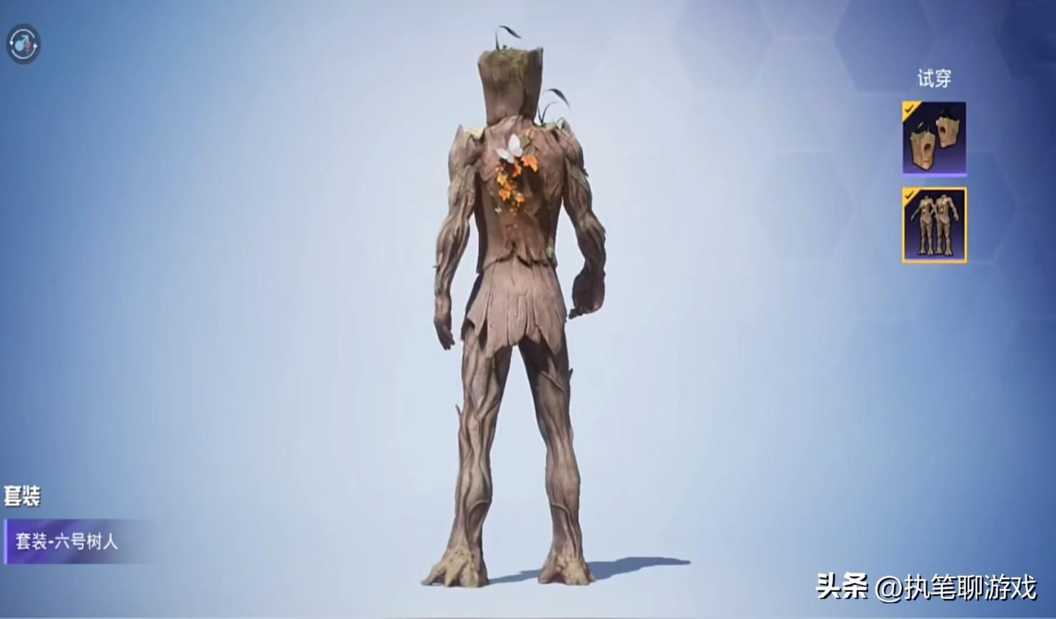 如圖所示,《和平精英》裏的“六號樹人”與印象中來自漫威的超級英雄格魯特,可以說是高度相似,唯一區別就是一些細節方面的變化而已。