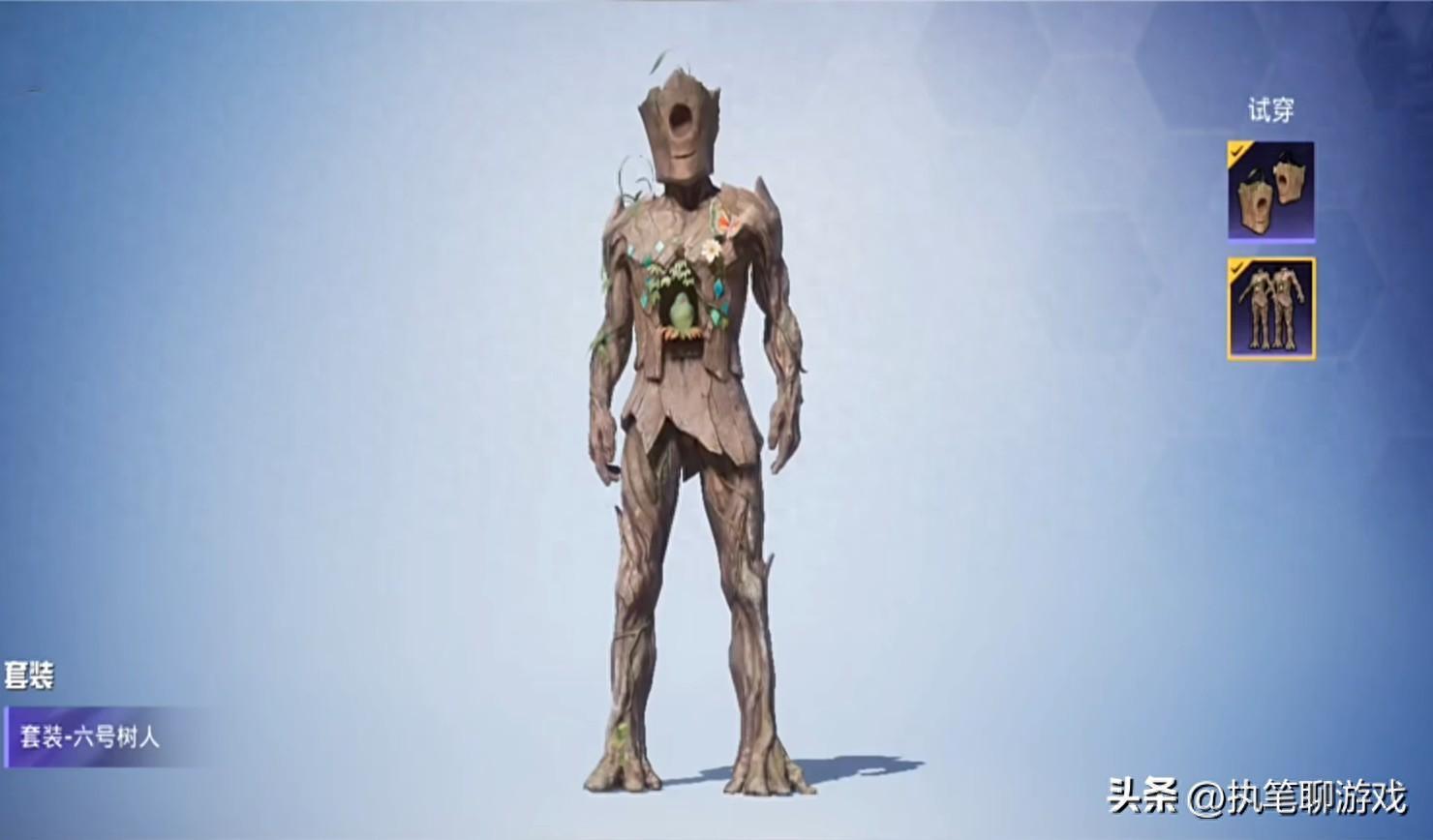 如果按照超級英雄的理解來看,格魯特來自“樹人族”,但按照《和平精英》的遊戲理解來看,這套衣服簡直是爲老6玩家量身打造的。