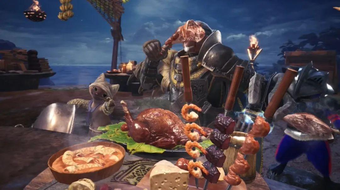 卡普空也一直是遊戲界最在意美食建模的公司之一,他們花了很多精力去做《怪物獵人》裏的食物,所以呈現的效果非常棒;就連《生化危機7》裏,他們也要特意給你把生蛆的滿漢全席來一堆特寫。