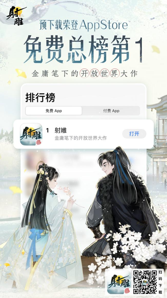 今天,網易的《射鵰》終於上線了。截止完稿,遊戲登上了iOS免費榜Top 1,暢銷榜Top 24。