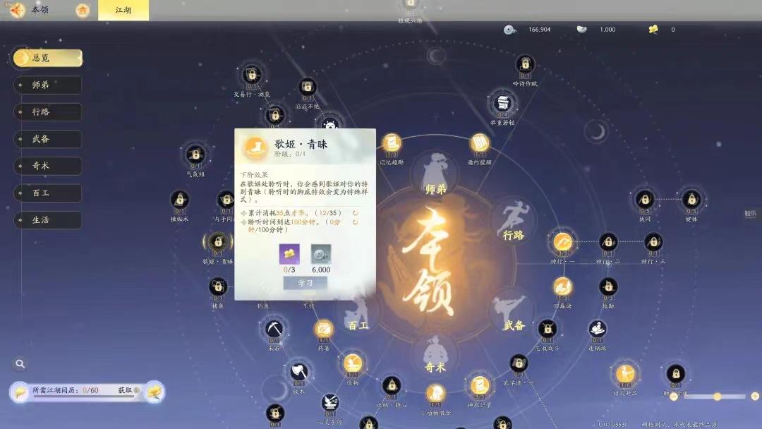 遊戲還有一個叫「本領」的天賦樹系統,裏面藏了一堆和戰鬥數值無關的天賦,比如怎麼討人歡心,怎麼在吟詩作對時作弊,怎麼讓角色收穫歌姬的青睞……