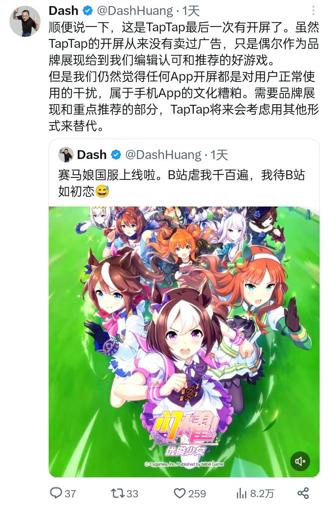 黃一孟曾宣佈TapTap將永久關閉開屏廣告,