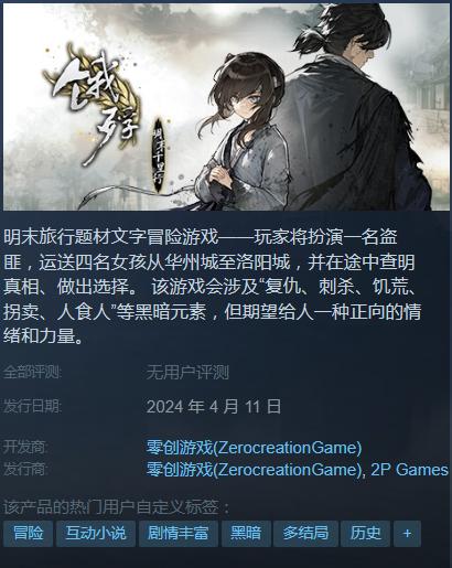 由零創遊戲開發的文字冒險遊戲《餓殍:明末千里行》將於4月11日登陸Steam。
