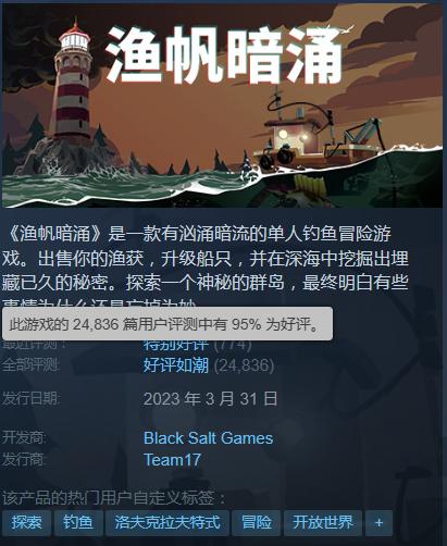 我們之前曾在次條中提到過這款克蘇魯釣魚遊戲,趁着一週年再向大家推薦一次,目前《漁帆暗湧》在Steam上收穫了近2.5萬條評價,好評率爲95%,好評如潮。