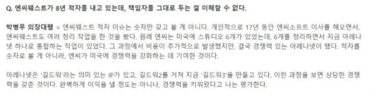 樸秉武表示,“最初,NC在美國有六家工作室,所做的工作就是將這六家工作室組織起來,整合成一個ArenaNet。儘管在此過程中產生了額外的成本,但最終形成了具有競爭力的ArenaNet。 NC沒有將赤字視爲一個數字,而是爲增強美國的競爭力做出了貢獻。