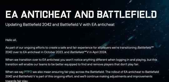 《戰地》官推發文宣佈,EA 反作弊系統將在北京時間 4 月 3 日下午 4 點整合到《戰地 5》遊戲中,玩家屆時需要重啓客戶端。