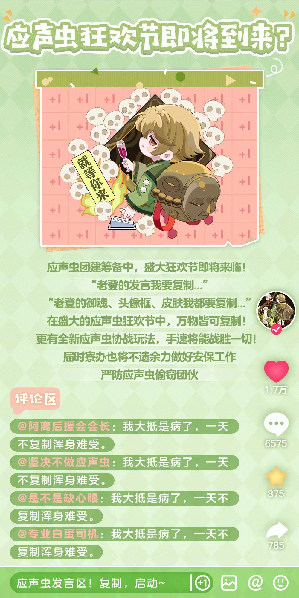 譬如,今天情報中提到的「應聲蟲狂歡節即將到來」,暗暗諷刺了之前某個遊戲企圖將應聲蟲據爲己有,而應聲蟲則是代表着陰陽師玩家喜歡複製的梗。同樣地,「3月22日,世界硬硬鼠日」則來自於玩家評論。