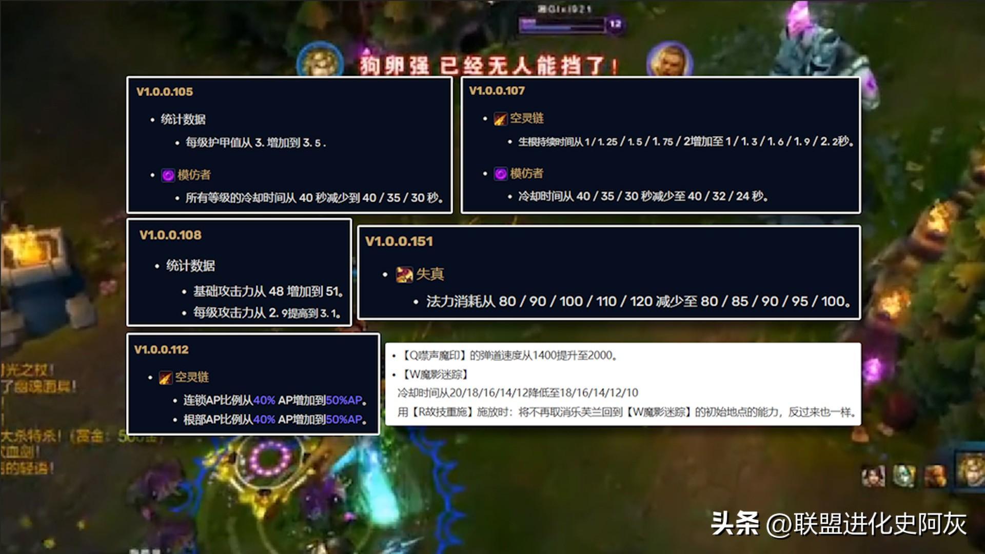 初代妖姬對比現在,機制上有四大區別,當時的分身相當拙劣,召出來就原地不動,本體的buff也不繼承,只能騙騙傻子,Q技能就厲害了,老版叫噤聲魔印,有高貴的沉默,並且還長達2秒!QW上來打你一套,手都還不了,這玩意真的活該被刪。