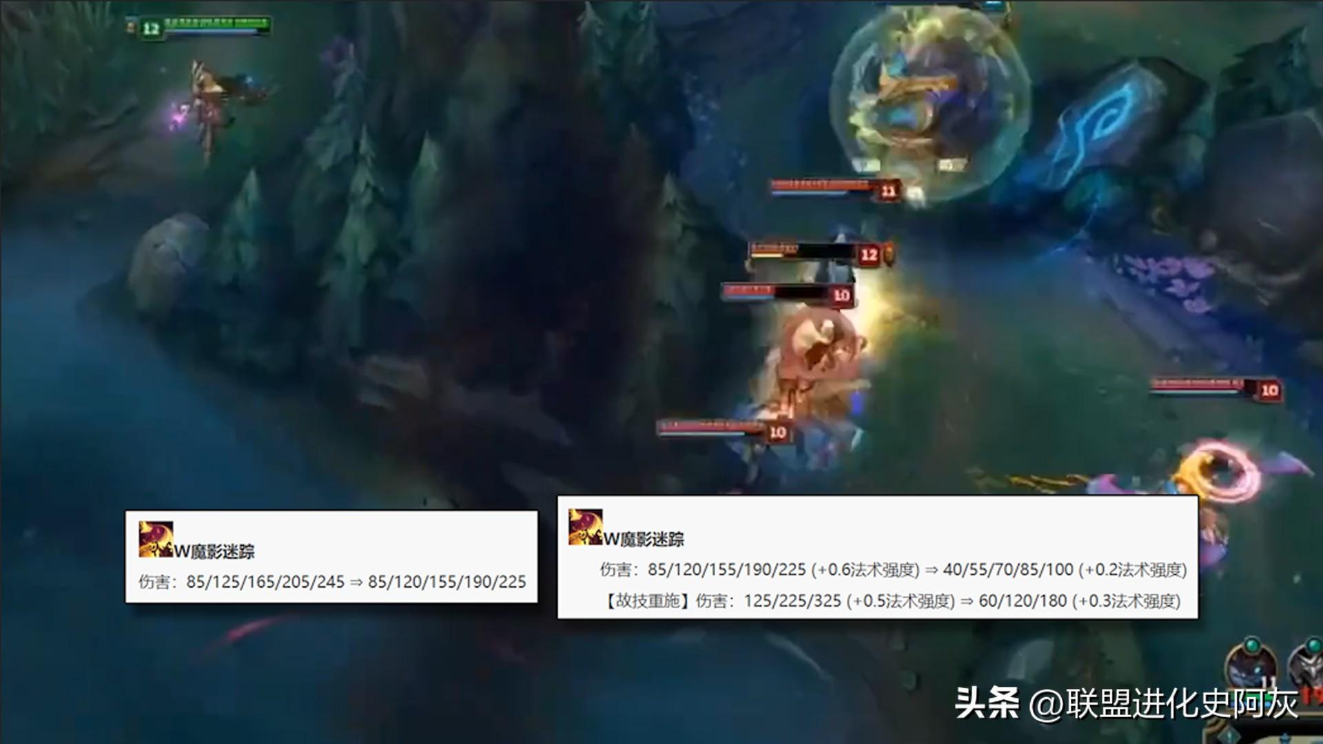 一段狗鏈帶25%減速,體感一般,因爲當時妖姬秒人,根本用不着觸發二段,W冥火QRE,脆皮直接就揚了,大招是最蠢的,複製技能傷害按百分比算,數值是沒啥毛病,蠢就蠢在它前中期只能複製主升技能,因爲其他技能基礎傷害低,複製出來還是拉胯,這一下就把妖姬的連招給鎖死了,主Q就只能QR,主W就只能WR,非常難受!另外據說當時,技能抬手速度也比現在更快,這個是真的假的?
