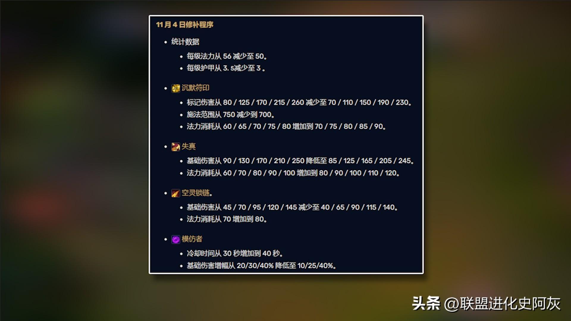 8.8版本“新版老妖姬”上線,設計師嘴最軟的一集,除了一段E減速被閹割,其餘全部回調,之前就是秒人太快才被重做,回調後這個問題又來了,那怎麼辦呢?繼續削唄!往後幾年,妖姬迎來了至暗時刻,一度淪爲冰槍、永霜工具人,把刺客的臉都丟盡了!