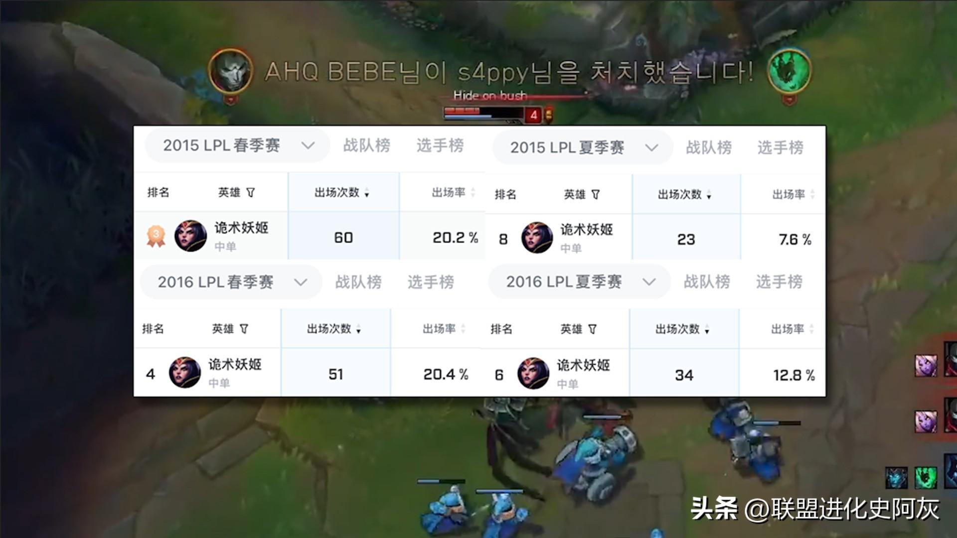 由於這代妖姬活的時間不長,所以很多人潛意識裏都認爲她的強度應該也挺拉的,實際上恰恰相反,彈彈姬剛上線那會,強得令人髮指,一級W二級E,只要鏈住接引燃必單殺,WQ彈彈樂清兵巨快,科技槍一出一波兵回滿血,遊走能力也是頂級,到了中後期,老版妖姬經常會因爲,偷不到人失去節奏,而彈彈姬巫妖一掏哐哐帶線,基本沒有弱勢期,有人可能會說你吹牛X呢?接下來給大夥上數據,可以看到彈彈姬剛出時的勝率是遠超老妖姬的,Ban率也達到了60%,連職業選手都處理不了,這還不算強嗎?