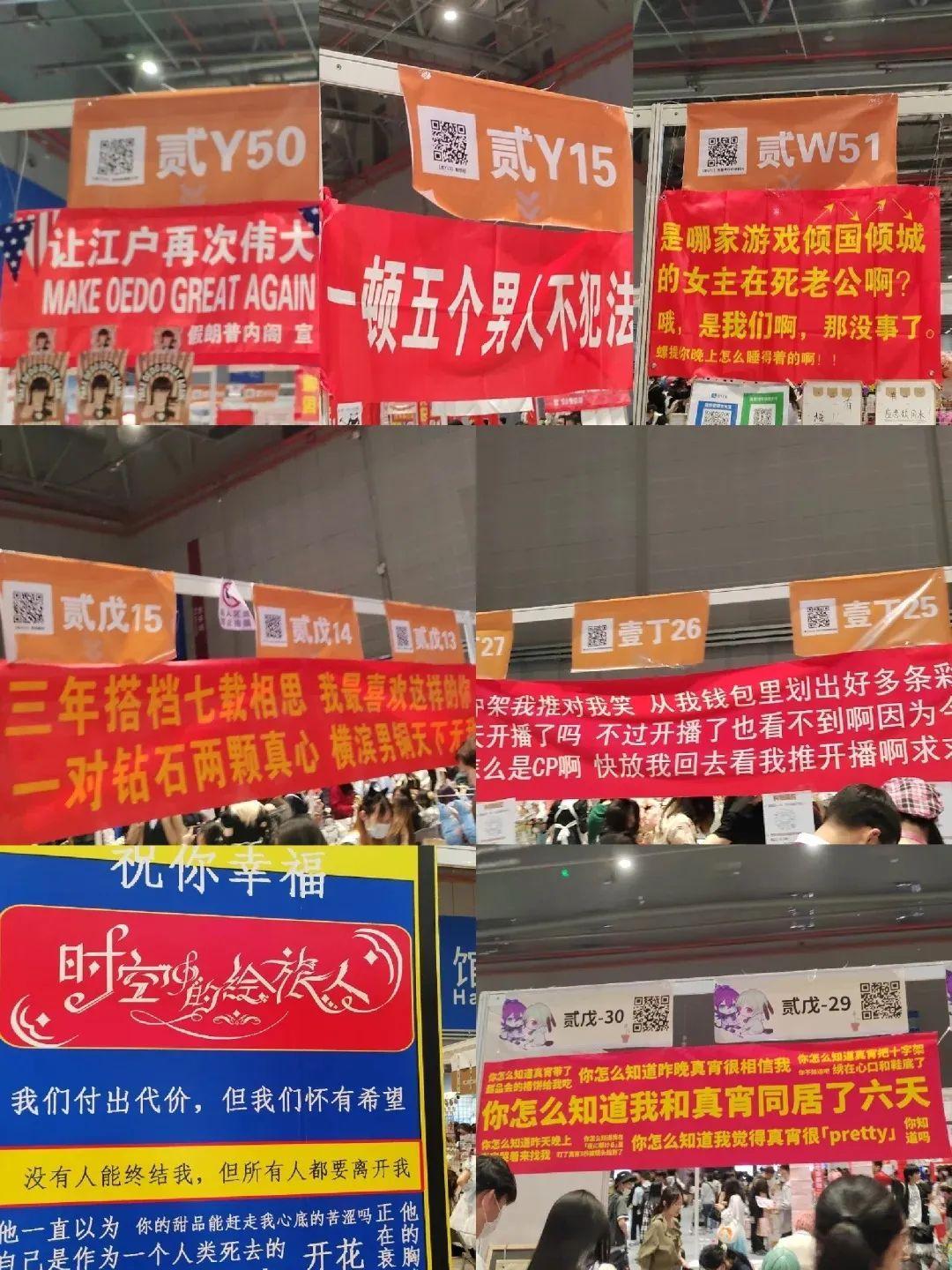像CP和CD這樣的同人展“巨頭”,舉辦期間各個IP、CP的街道、攤位、商品甚至於攤位上拉的橫幅都已然成爲每年的保留節目。