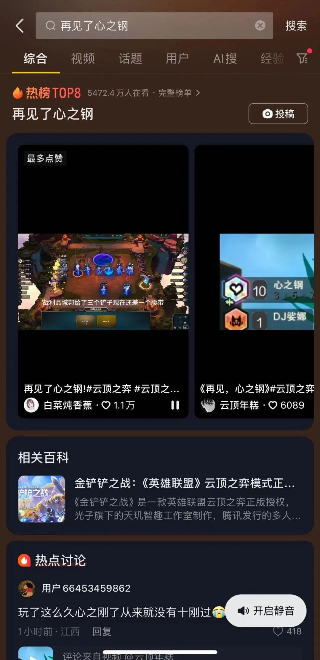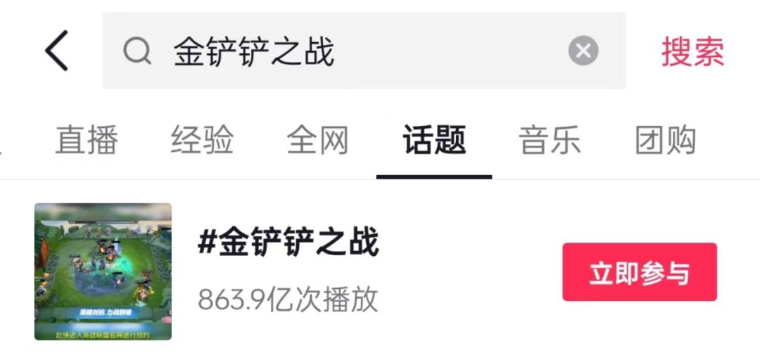 在B站,金剷剷相關的攻略、二創能有幾十上百萬播放;在小紅書,金剷剷也是絕對的熱門遊戲,人們分享陣容、互相安利;在抖音,“金剷剷之戰”單話題下就有超過863億次播放。