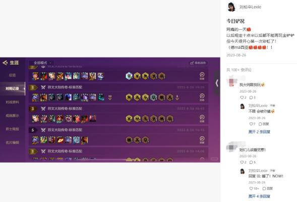 歌手劉柏辛則堪稱金剷剷忠粉,不但休息、健身的時候都會開兩把,還會發小紅書跟粉絲分享玩《金剷剷之戰》的心得、吐槽。