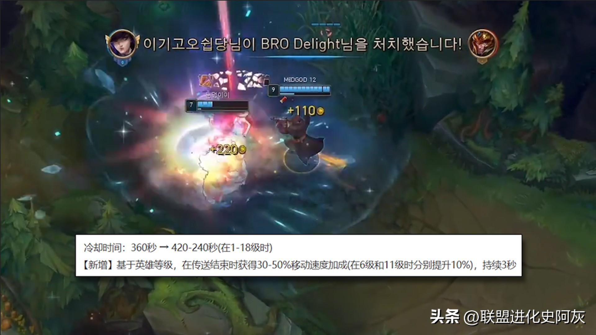 13.10版本傳送解封時間下調至10分鐘,下路剛好養的白白胖胖,這時候T下去美滋滋,加強之後的傳送,再度成爲了最熱門召喚師技能,估計離第五次改版也不遠咯。
