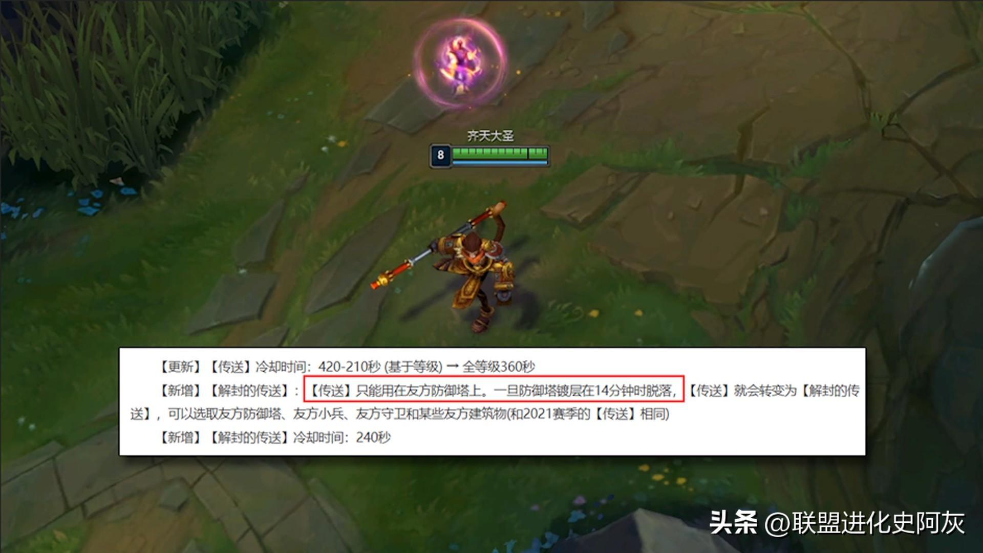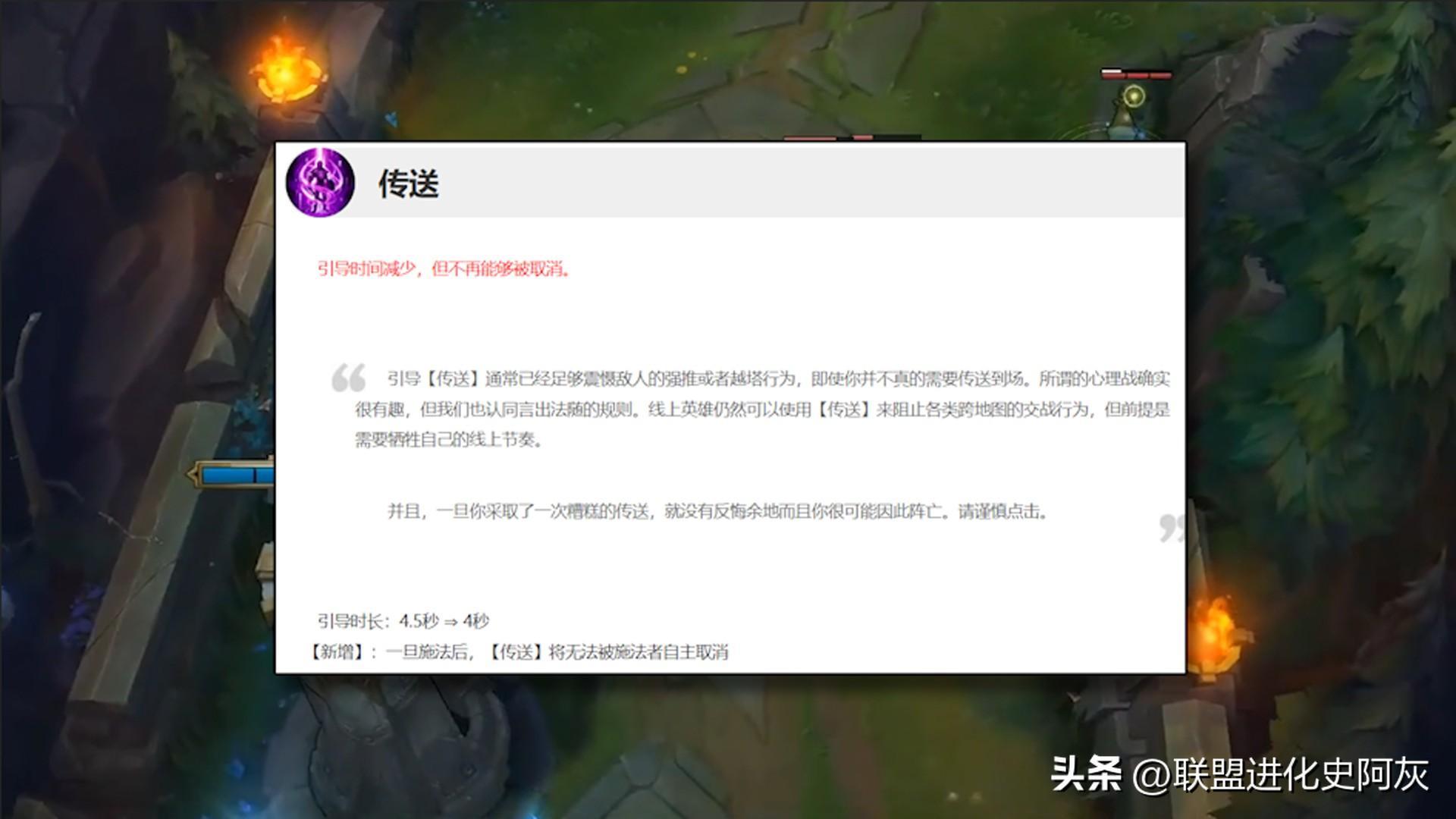 說起傳送,你印象最深的畫面是什麼?是一支穿雲箭,千軍萬馬來相見的頂級四保一,還是TP保隊友,妙手回春的神級救場,又或者是原地飛天,戲耍敵人的逃跑名場面呢?作爲聯盟中最影響,遊戲平衡的召喚師技能,傳送從上線至今一共經歷過四次大改版,每次改版都會引起軒然大波,今天咱們就來細嗦一下傳送。