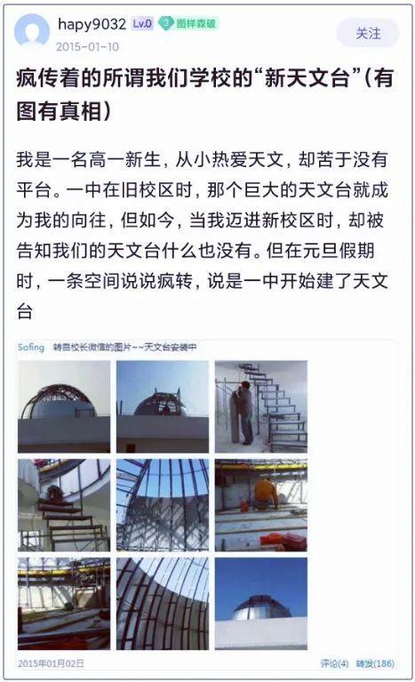 如果你再查下去,還會發現十多年裏,不斷有人表示,其實很多學校的天文臺都是假的,他們只是建了個實心的球,用來通過省示範中學的評選。