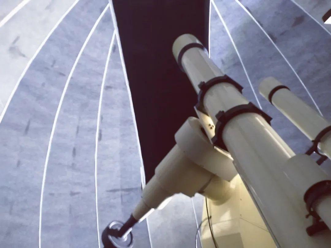 他拍攝了一段天文臺的室內錄像,晃動的鏡頭裏,孤零零的腳步聲不斷迴盪,在潮溼骯髒的地面,還有陳舊的牆壁間碰撞,佈滿鏽跡的碩大望遠鏡對向鏡頭外的某處光源。藉着這光,能看到與望遠鏡相連的電腦已經嚴重落伍了,用還是十多年前的顯像管顯示器。