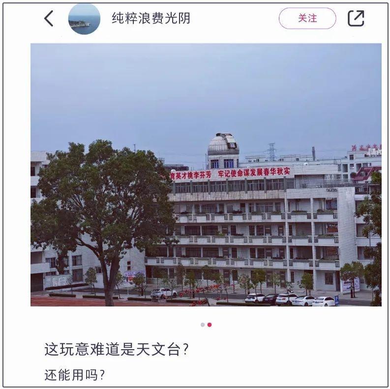 這時,如果你立刻從提問貼划走,那可能會不以爲意;但假如你仔細思考一下這事,就會發現它的魔幻性——在應試教育嚴重,學生的時間被作業和課程吞噬的中國,卻在大多數學校頂端都有一個隱蔽的天文臺,而許多人甚至不知道它到底是什麼。