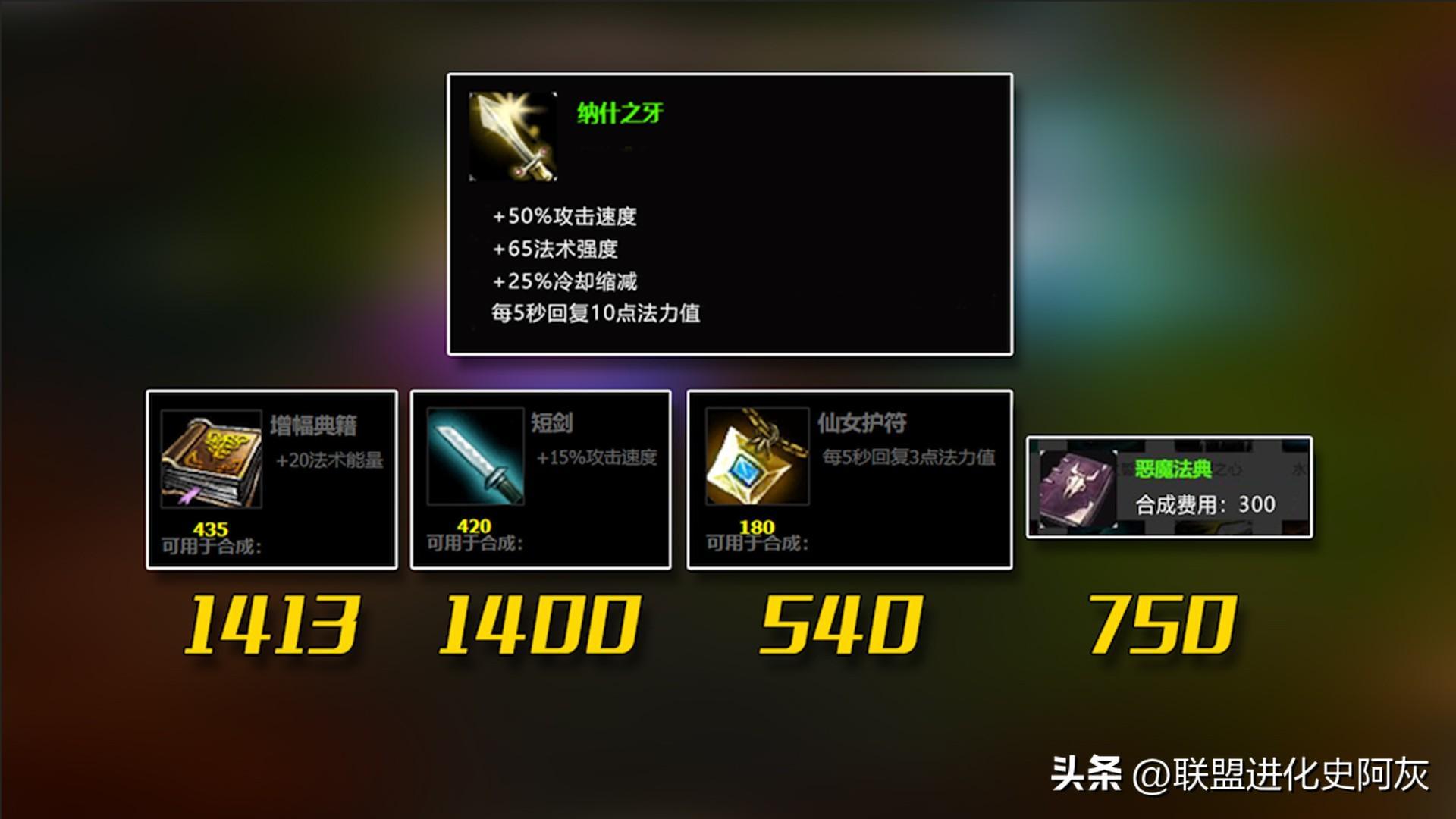另外那會帶法強和攻速的裝備,不只有納什之牙,還有一件腐蝕之刃,被動是平A帶法傷+減魔抗,價格比納什之牙還便宜800,要過渡也是首選這玩意。