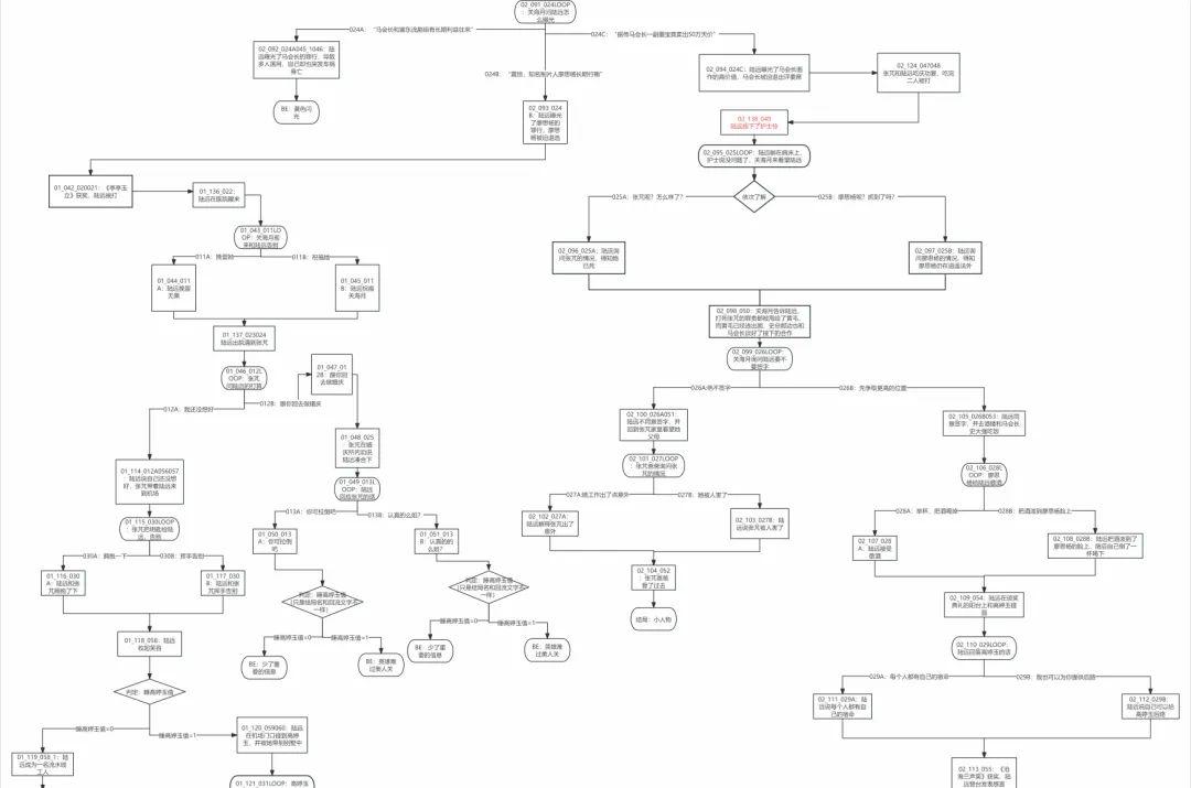 這種分支圖,會在互動影遊的生產中成爲一個重要環節。不管是劇本、設計、程序層面,最終都要依賴這個圖做改進。在這個時間節點上,行業的發展還處於初期,要讓每個部門都能理解這套做法,需要大量溝通和精力。