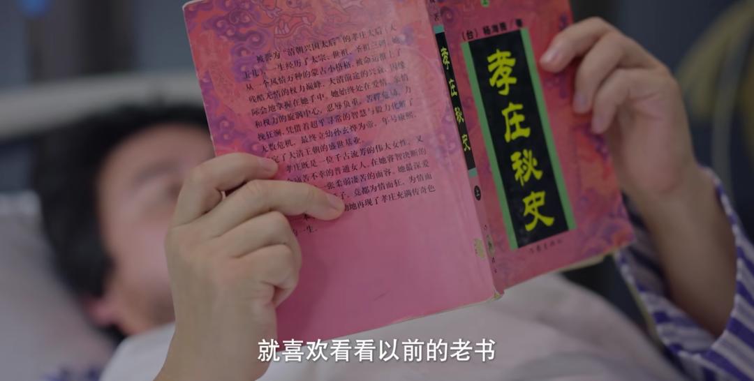 另外,關於這段還有個細節:爲了讓情節更有黑色幽默的感覺,我們找了半天,找來一本粉色的《孝莊祕史》,讓大強在表面粗獷,實則細緻的反差之餘,還顯得有點可愛。