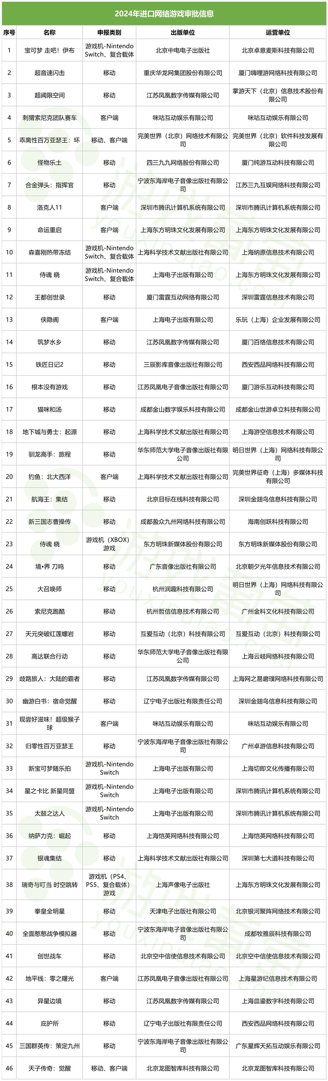 以下爲截至目前的2024年進口網絡遊戲審批信息: