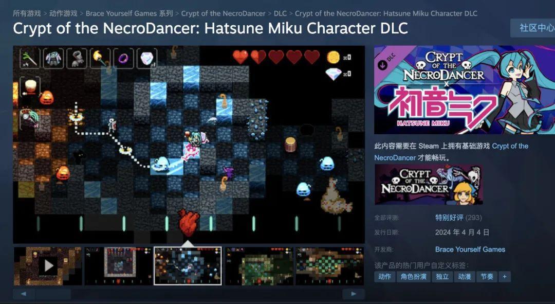 今天推薦一下《Crypt of the NecroDancer》(節奏地牢)吧,最近遊戲更新了新的DLC,跟初音未來來了一波聯動。