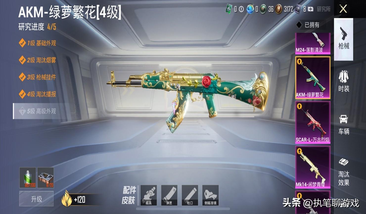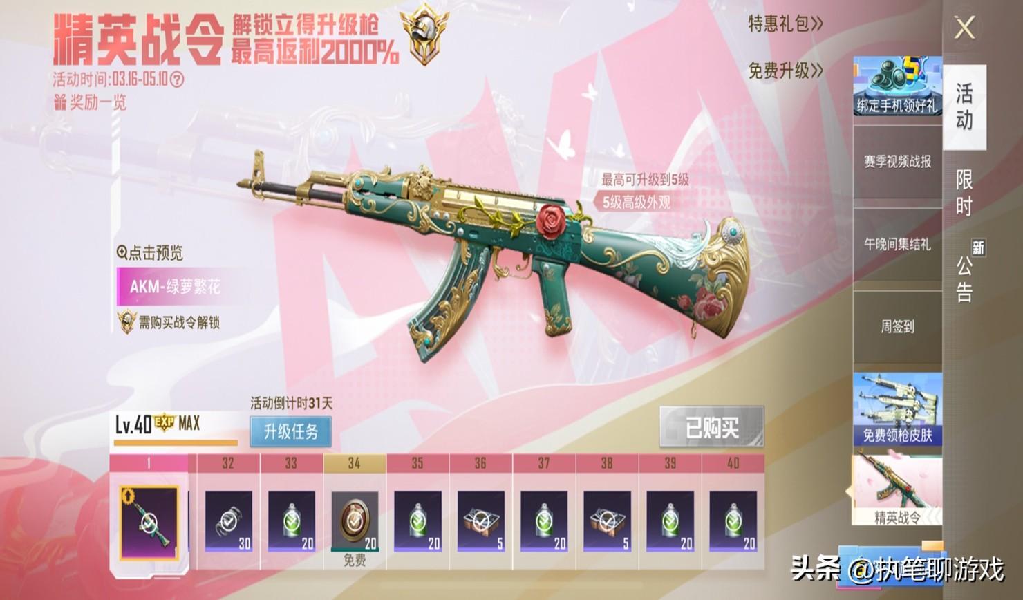 聊完了不同版本的木乃伊後,和大家說一下關於戰令AKM的事情,需要提醒諸位:提升到40級後,所獲得的材料並不足以把AKM升到滿級哦~