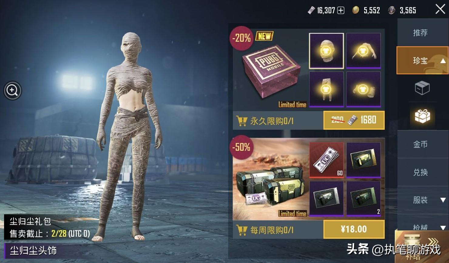 值得一提的是,木乃伊系列其實還有女版,只是極爲罕見而已,而且出現至今已經有四五年之久,印象當中應該沒有返場過,它就是“塵歸塵”,當初以直售禮包的方式出現在PubgM裏,一度被玩家認爲會被“照搬”到《和平精英》中,可惜也因此尺度的原因,至今都沒有實現。
