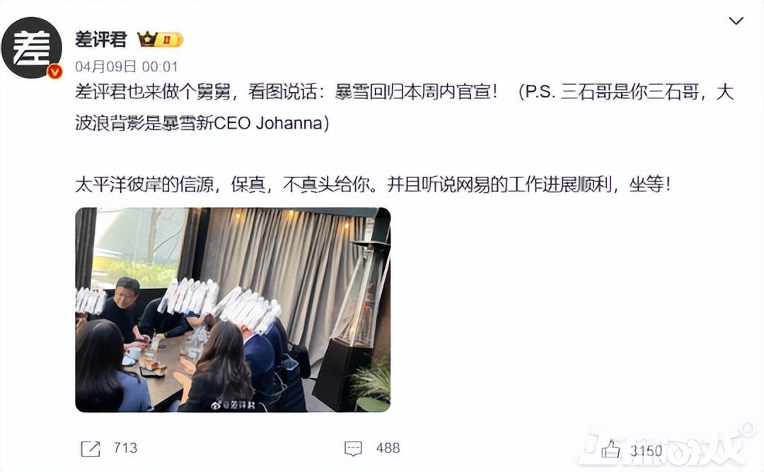 暴雪和網易的重新合作由著名微博大V差評君用“人頭保證”,當日也是直接衝上微博熱搜,之後的官方宣佈更是讓該詞條成功爆火穩坐頭條。
