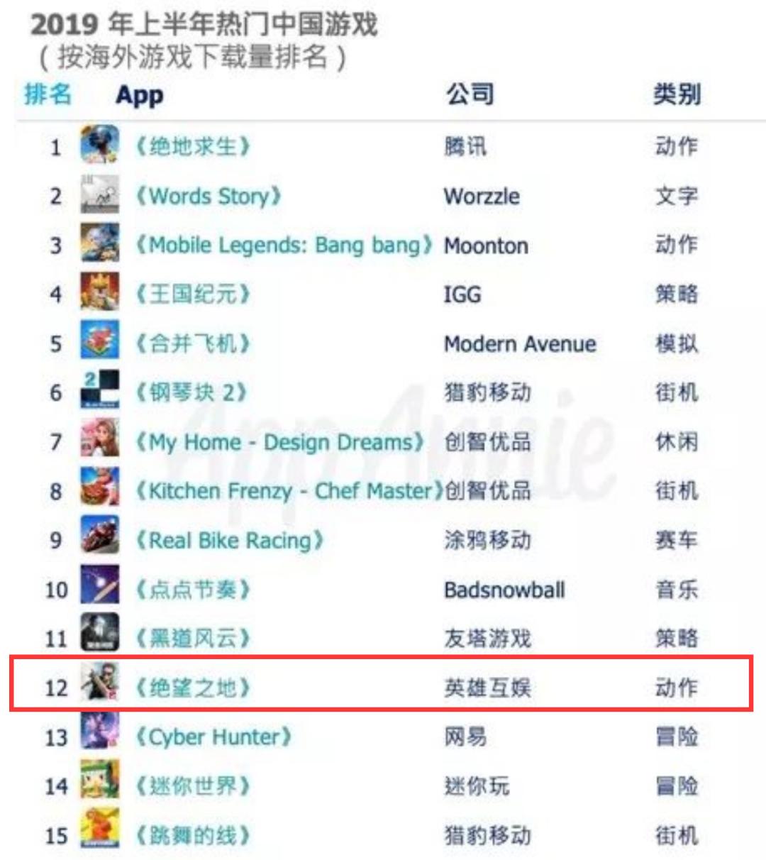 這次更新也使得《王牌戰爭》獲得了不錯的熱度,產品最高衝上了當時國內iOS免費榜的TOP 3,同時其海外版本,也成了data.ai統計的2019上半年最熱門的出海戰術競技手遊之一,下載量僅次於《PUBG M》。