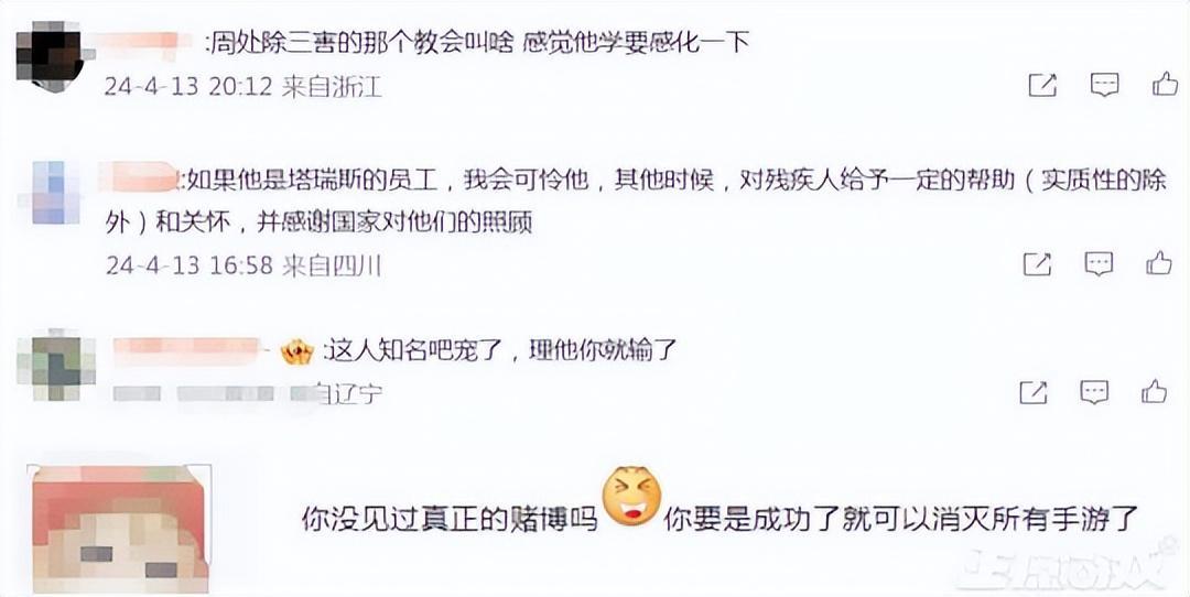 還有心疼騰訊的網友表示,如果他是《塔瑞斯世界》的員工,我會可憐他,其他時候,對殘疾人給予一定的幫助。《塔瑞斯世界》是騰訊代理的一款對標魔獸的手遊,沒想到《塔瑞斯世界》還沒上架,暴雪迴歸了。