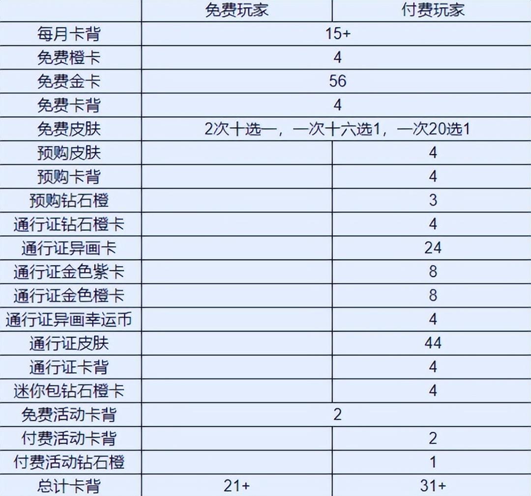 光是玩家自發統計出來的東西就有4張免費橙卡、56張免費金卡、6個特殊卡背、4個特殊皮膚,以及十餘個活動異畫卡。
