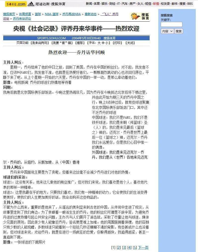 2001-2002年,隨着中國男籃“三大長城”王治郅、巴特爾和姚明陸續登陸NBA,籃球運動在中國的熱度迎來爆發式增長。2004年,剛退役不久的邁克爾·喬丹來到北京,期間北京市掀起了空前絕後的籃球熱潮。有別於其他任何一位體育明星的“中國行”,國內主流媒體將喬丹的此次來華定義爲“訪華”。