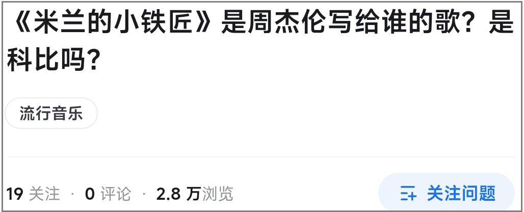 後來,國內球迷把投籃不中砸在籃筐上的聲音稱作“打鐵”,進而在科比身上衍化出“三仰化二鐵”“四仰化三鐵”等梗。又因爲科比小時候曾在意大利生活過,而周杰倫的專輯《八度空間》中有一首R&B歌曲《米蘭的小鐵匠》,兩人的關係也淪爲津津樂道的笑談。